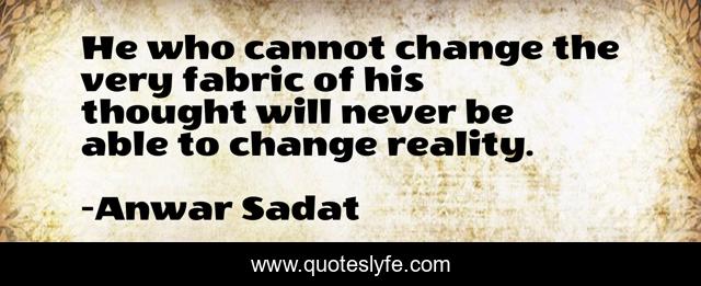 This page presents the quote "He who cannot change the very fabric of his thought will never be able to change reality.". Author of this quote is Anwar Sadat. This quote is about positive, confidence, creating, change,.