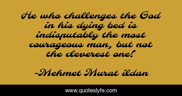 This page presents the quote "He who challenges the God in his dying bed is indisputably the most courageous man, but not the cleverest one!". Author of this quote is Mehmet Murat ildan. .
