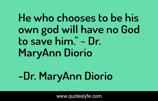 This page presents the quote "He who chooses to be his own god will have no God to save him." ~ Dr. MaryAnn Diorio". Author of this quote is Dr. MaryAnn Diorio. This quote is about atheist, save, salvation, god,.