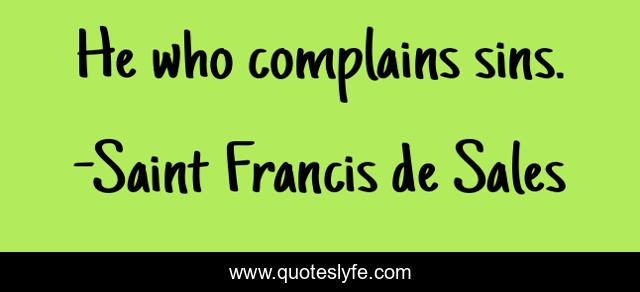 "Saint Francis de Sales Quotes." Quoteslyfe.com, 2025. Sat. 06 Dec. 2025. <https://www.quoteslyfe.com/quote/He-who-complains-sins-276077>.
