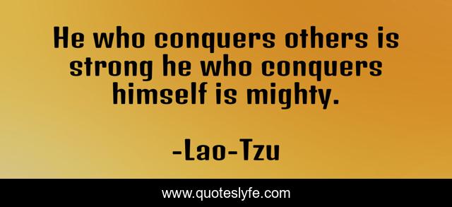 This page presents the quote "He who conquers others is strong he who conquers himself is mighty.". Author of this quote is Lao-Tzu. This quote is about control, self,.
