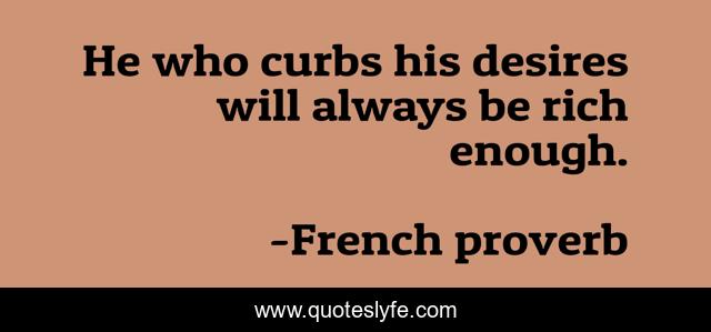 This page presents the quote "He who curbs his desires will always be rich enough.". Author of this quote is French proverb. .