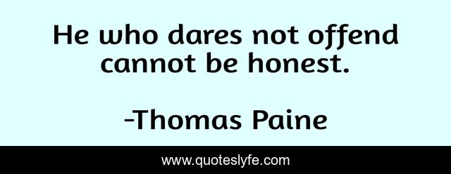 This page presents the quote "He who dares not offend cannot be honest.". Author of this quote is Thomas Paine. This quote is about activism, truth-and-lies, wisdom,.