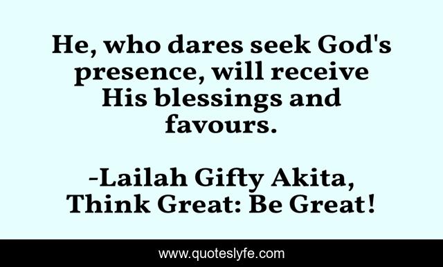 "Lailah Gifty Akita, Think Great: Be Great! Quotes." Quoteslyfe.com, 2025. Tue. 09 Dec. 2025. <https://www.quoteslyfe.com/quote/He-who-dares-seek-God-s-presence-121304>.