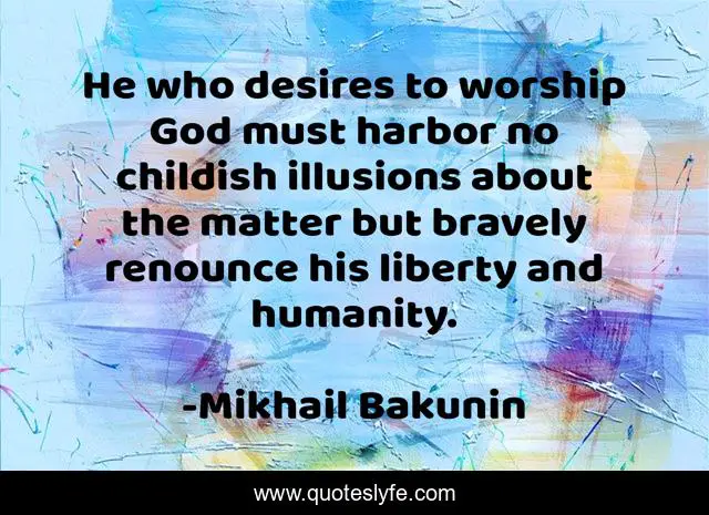 This page presents the quote "He who desires to worship God must harbor no childish illusions about the matter but bravely renounce his liberty and humanity.". Author of this quote is Mikhail Bakunin. This quote is about matter, humanity, liberty,.