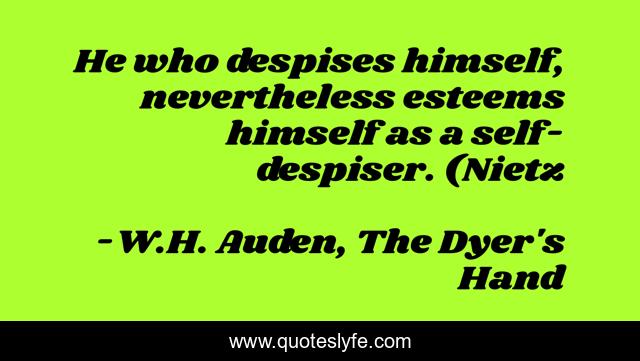 This page presents the quote "He who despises himself, nevertheless esteems himself as a self-despiser. (Nietz". Author of this quote is W.H. Auden, The Dyer's Hand. This quote is about pride, vanity,.