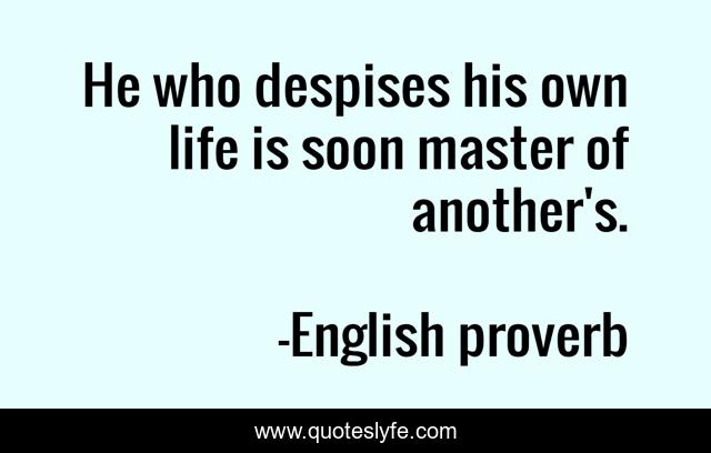 This page presents the quote "He who despises his own life is soon master of another's.". Author of this quote is English proverb. .