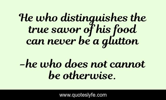 This page presents the quote "He who distinguishes the true savor of his food can never be a glutton". Author of this quote is he who does not cannot be otherwise.. .