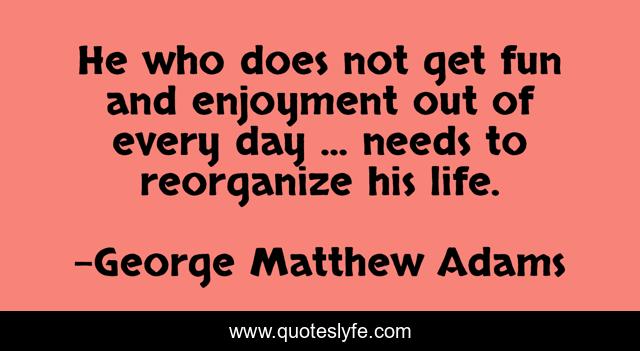 This page presents the quote "He who does not get fun and enjoyment out of every day ... needs to reorganize his life.". Author of this quote is George Matthew Adams. This quote is about day, one,.