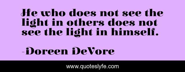 This page presents the quote "He who does not see the light in others does not see the light in himself.". Author of this quote is Doreen DeVore. This quote is about light, inspiration, reflection, self-growth,.
