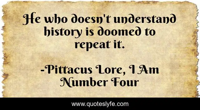 "Pittacus Lore, I Am Number Four Quotes." Quoteslyfe.com, 2025. Fri. 05 Dec. 2025. <https://www.quoteslyfe.com/quote/He-who-doesn-t-understand-history-is-12396>.