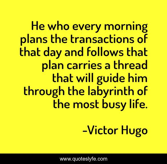 "Victor Hugo Quotes." Quoteslyfe.com, 2025. Mon. 08 Dec. 2025. <https://www.quoteslyfe.com/quote/He-who-every-morning-plans-the-transactions-254412>.