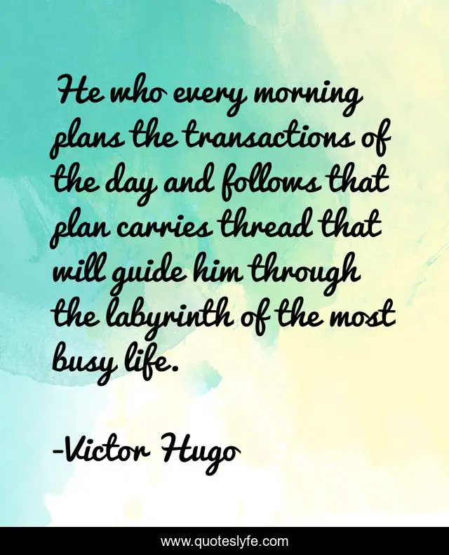 "Victor Hugo Quotes." Quoteslyfe.com, 2025. Fri. 05 Dec. 2025. <https://www.quoteslyfe.com/quote/He-who-every-morning-plans-the-transactions-271017>.