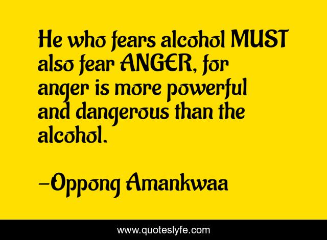 This page presents the quote "He who fears alcohol MUST also fear ANGER, for anger is more powerful and dangerous than the alcohol.". Author of this quote is Oppong Amankwaa. .