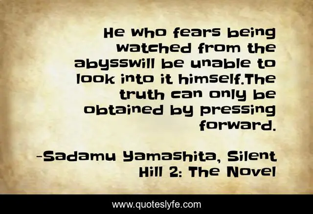 "Sadamu Yamashita, Silent Hill 2: The Novel Quotes." Quoteslyfe.com, 2025. Sun. 07 Dec. 2025. <https://www.quoteslyfe.com/quote/He-who-fears-being-watched-from-the-156503>.
