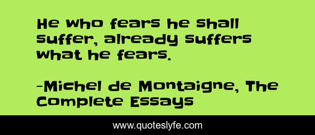 "Michel de Montaigne, The Complete Essays Quotes." Quoteslyfe.com, 2025. Mon. 08 Dec. 2025. <https://www.quoteslyfe.com/quote/He-who-fears-he-shall-suffer-already-44899>.