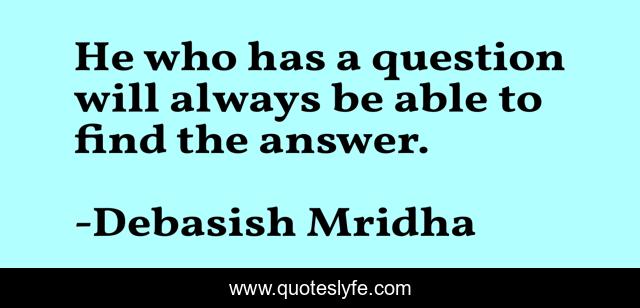 This page presents the quote "He who has a question will always be able to find the answer.". Author of this quote is Debasish Mridha. This quote is about philosophy, debasish-mridha, find-the-answer, quotes, asking-questions, inspirational, enthusiasm, education, debasish-mridha-m-d,.