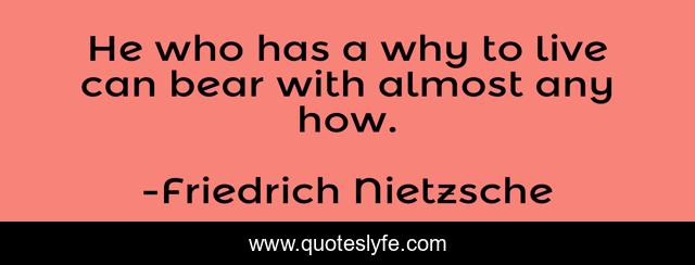 This page presents the quote "He who has a why to live can bear with almost any how.". Author of this quote is Friedrich Nietzsche. .