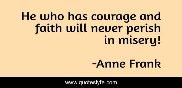 This page presents the quote "He who has courage and faith will never perish in misery!". Author of this quote is Anne Frank. .