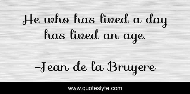 This page presents the quote "He who has lived a day has lived an age.". Author of this quote is Jean de la Bruyere. This quote is about day, one,.