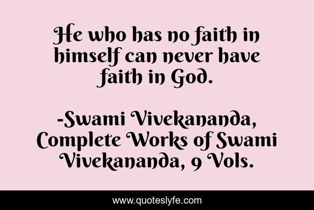 This page presents the quote "He who has no faith in himself can never have faith in God.". Author of this quote is Swami Vivekananda, Complete Works of Swami Vivekananda, 9 Vols.. This quote is about faith, life, god, religion, suffering, struggle, hinduism,.
