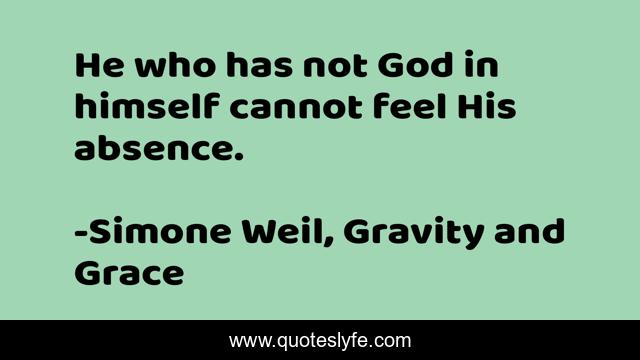 This page presents the quote "He who has not God in himself cannot feel His absence.". Author of this quote is Simone Weil, Gravity and Grace. This quote is about faith, doubt,.