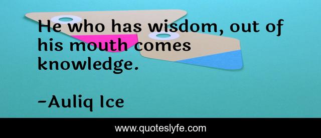 This page presents the quote "He who has wisdom, out of his mouth comes knowledge.". Author of this quote is Auliq Ice. This quote is about wisdom-words, knowledge, wisdom,.
