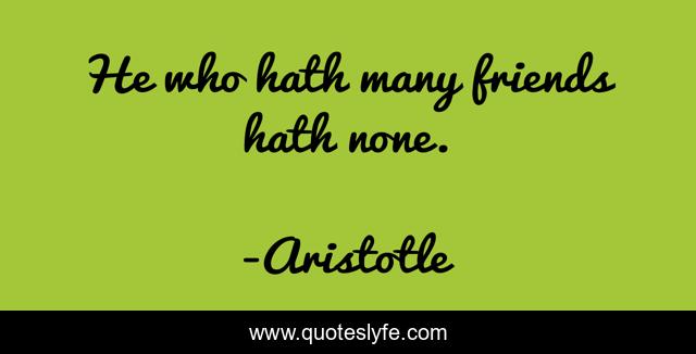 This page presents the quote "He who hath many friends hath none.". Author of this quote is Aristotle. This quote is about many, none, friends,.