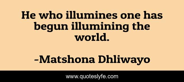 "Matshona Dhliwayo Quotes." Quoteslyfe.com, 2025. Sat. 06 Dec. 2025. <https://www.quoteslyfe.com/quote/He-who-illumines-one-has-begun-illumining-98746>.
