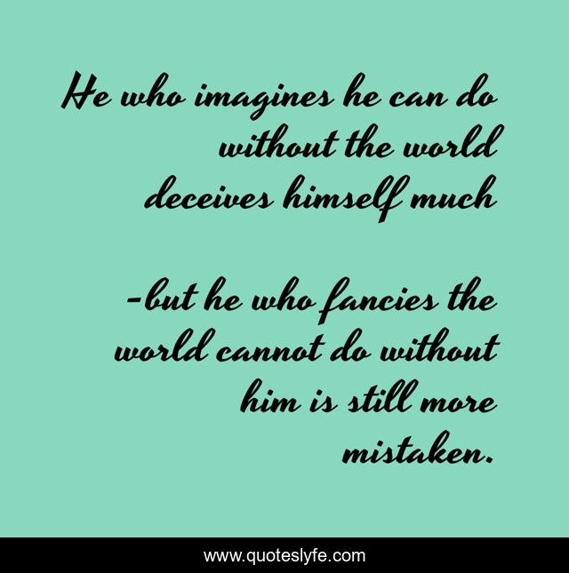 "but he who fancies the world cannot do without him is still more mistaken. Quotes." Quoteslyfe.com, 2025. Sat. 06 Dec. 2025. <https://www.quoteslyfe.com/quote/He-who-imagines-he-can-do-without-186262>.