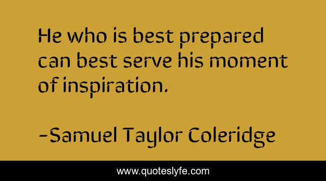 This page presents the quote "He who is best prepared can best serve his moment of inspiration.". Author of this quote is Samuel Taylor Coleridge. This quote is about preparation, inspiration,.