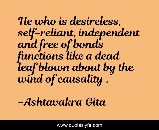 "Ashtavakra Gita Quotes." Quoteslyfe.com, 2025. Fri. 05 Dec. 2025. <https://www.quoteslyfe.com/quote/He-who-is-desireless-self-reliant-independent-181722>.