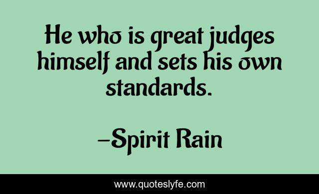 This page presents the quote "He who is great judges himself and sets his own standards.". Author of this quote is Spirit Rain. .