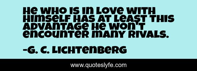 This page presents the quote "He who is in love with himself has at least this advantage he won't encounter many rivals.". Author of this quote is G. C. Lichtenberg. This quote is about self, knowledge,.