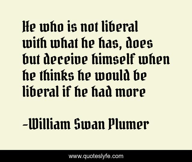 "William Swan Plumer Quotes." Quoteslyfe.com, 2025. Sat. 06 Dec. 2025. <https://www.quoteslyfe.com/quote/He-who-is-not-liberal-with-what-244450>.