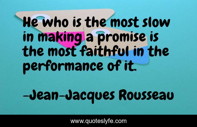 This page presents the quote "He who is the most slow in making a promise is the most faithful in the performance of it.". Author of this quote is Jean-Jacques Rousseau. .