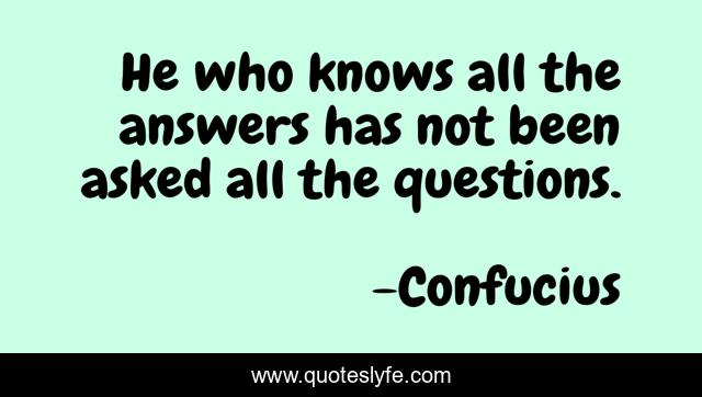 This page presents the quote "He who knows all the answers has not been asked all the questions.". Author of this quote is Confucius. .