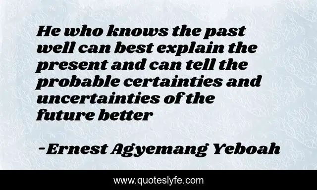 "Ernest Agyemang Yeboah Quotes." Quoteslyfe.com, 2025. Sat. 06 Dec. 2025. <https://www.quoteslyfe.com/quote/He-who-knows-the-past-well-can-158672>.