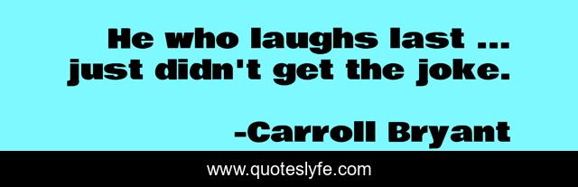 This page presents the quote "He who laughs last ... just didn't get the joke.". Author of this quote is Carroll Bryant. This quote is about humorous, funny, comedy, humor, funny-but-true,.