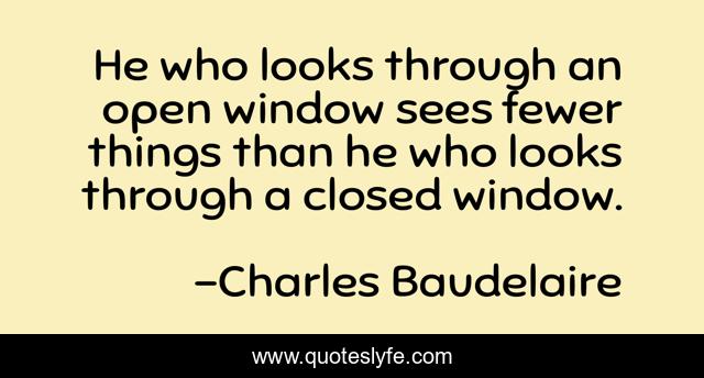 This page presents the quote "He who looks through an open window sees fewer things than he who looks through a closed window.". Author of this quote is Charles Baudelaire. .