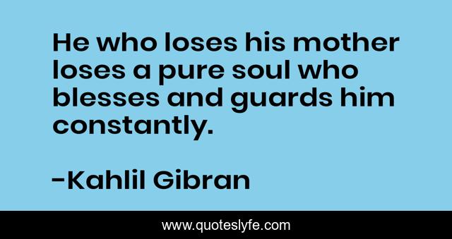 This page presents the quote "He who loses his mother loses a pure soul who blesses and guards him constantly.". Author of this quote is Kahlil Gibran. This quote is about kahlil-gibran, mothers-love, mothers,.