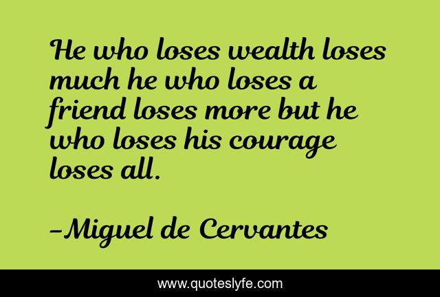 This page presents the quote "He who loses wealth loses much he who loses a friend loses more but he who loses his courage loses all.". Author of this quote is Miguel de Cervantes. .