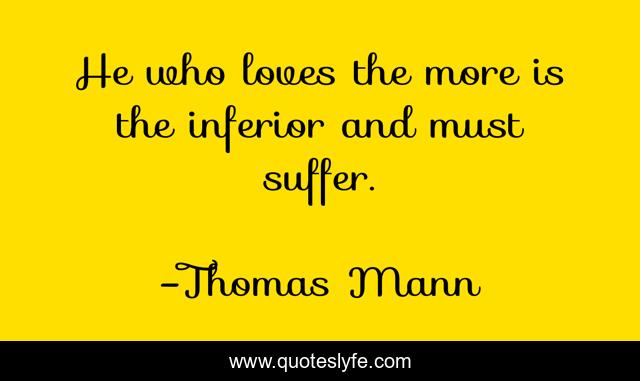This page presents the quote "He who loves the more is the inferior and must suffer.". Author of this quote is Thomas Mann. This quote is about love, affection,.