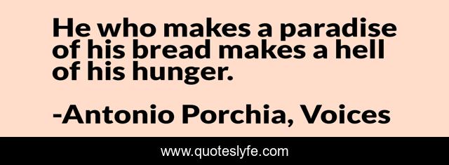 This page presents the quote "He who makes a paradise of his bread makes a hell of his hunger.". Author of this quote is Antonio Porchia, Voices. .