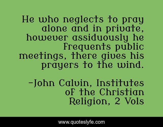 "John Calvin, Institutes of the Christian Religion, 2 Vols Quotes." Quoteslyfe.com, 2025. Fri. 05 Dec. 2025. <https://www.quoteslyfe.com/quote/He-who-neglects-to-pray-alone-and-115337>.