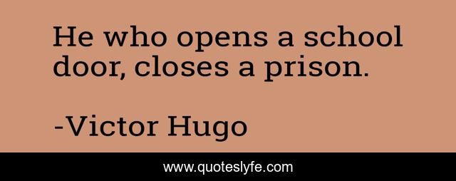 This page presents the quote "He who opens a school door, closes a prison.". Author of this quote is Victor Hugo. .
