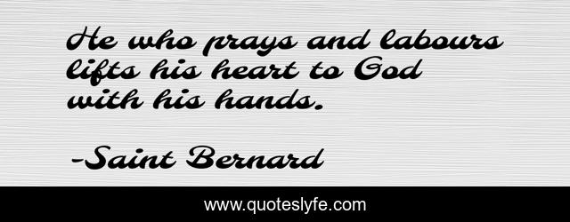 This page presents the quote "He who prays and labours lifts his heart to God with his hands.". Author of this quote is Saint Bernard. This quote is about self, reliance,.