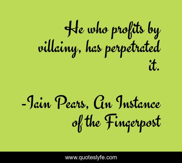 "Iain Pears, An Instance of the Fingerpost Quotes." Quoteslyfe.com, 2025. Mon. 08 Dec. 2025. <https://www.quoteslyfe.com/quote/He-who-profits-by-villainy-has-perpetrated-154103>.