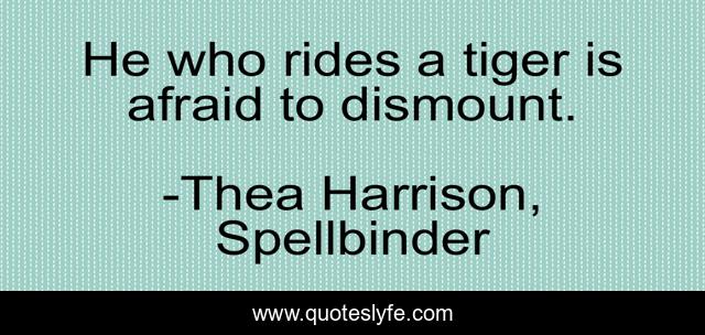 "Thea Harrison, Spellbinder Quotes." Quoteslyfe.com, 2025. Fri. 05 Dec. 2025. <https://www.quoteslyfe.com/quote/He-who-rides-a-tiger-is-afraid-131698>.