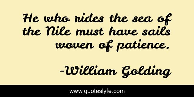 This page presents the quote "He who rides the sea of the Nile must have sails woven of patience.". Author of this quote is William Golding. This quote is about sails, sea,.